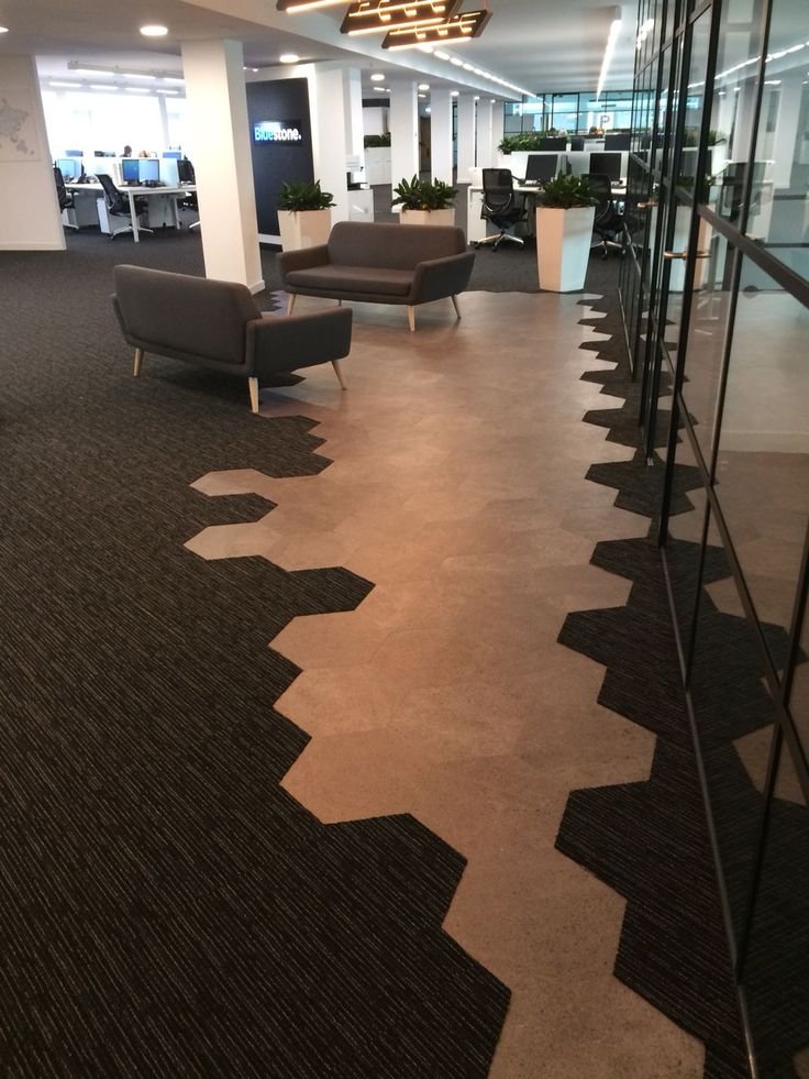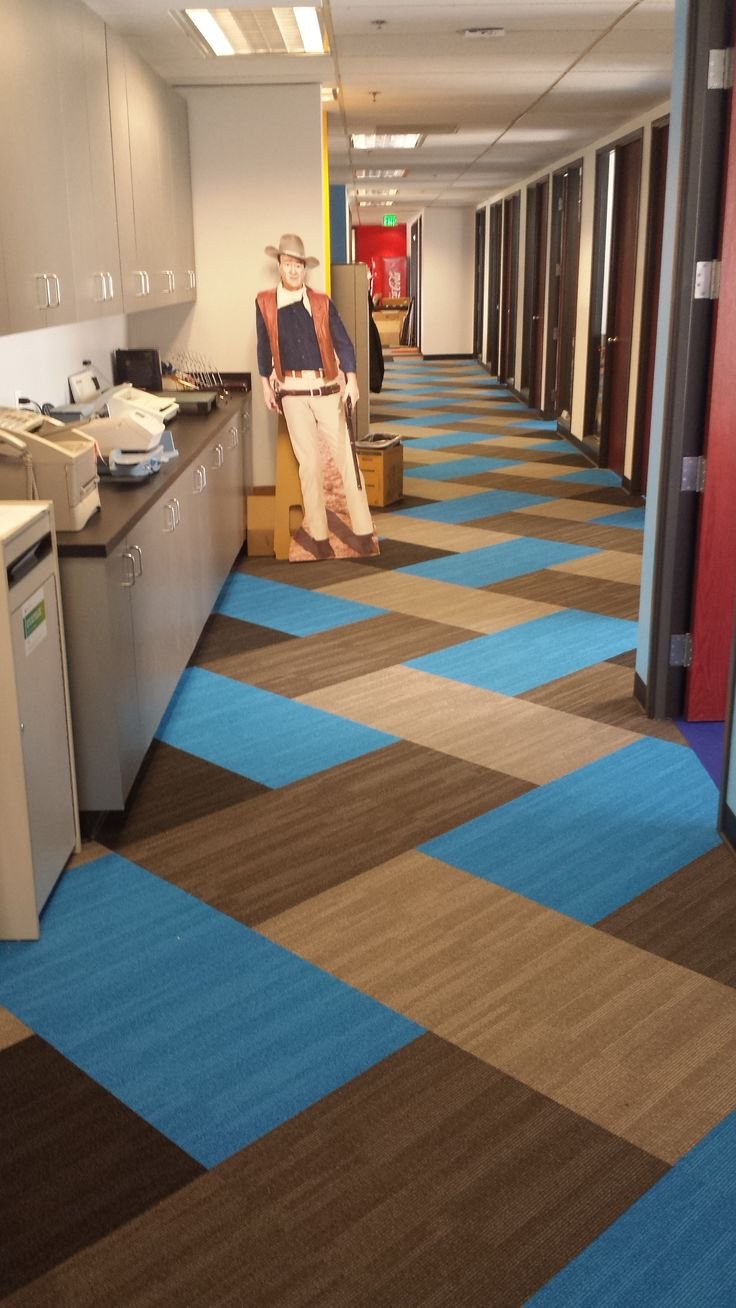 Absolutely. Our custom installation creates unique patterns using multiple colors. We design layouts showing exactly how finished floors look. Many companies use color zoning creating visual departments or wayfinding through their office spaces guiding visitors naturally.
