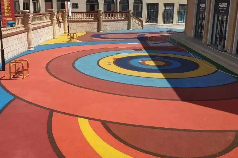 Yes. Floor Land mixes custom colors matching your branding. We create any pattern including hopscotch, educational shapes, sports markings, or artistic designs. EPDM granules allow unlimited creativity in safety surfacing design.