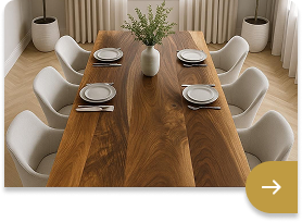 Yes. Floor Lands applies heat-resistant finish to all dining tables. Handles hot plates without damage. However, we still recommend trivets for very hot cookware protecting table surface long-term.