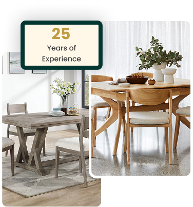 All Floor Lands dining tables include 2-year warranty on structure and 1-year on finish. We repair or replace manufacturing defects during warranty period at no cost to customers ever.