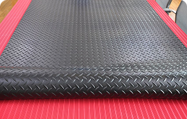 Oil resistant mats for automotive workshops and garages. Protects concrete from stains and damage. Diamond plate patterns provide maximum traction always.