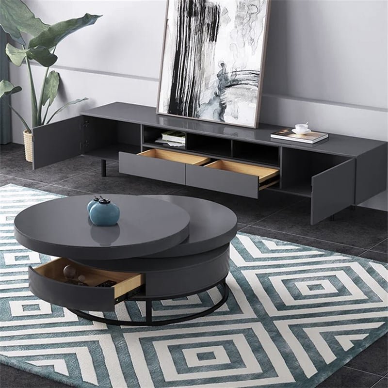 800mm Modern Round Swivel Wooden Coffee Table