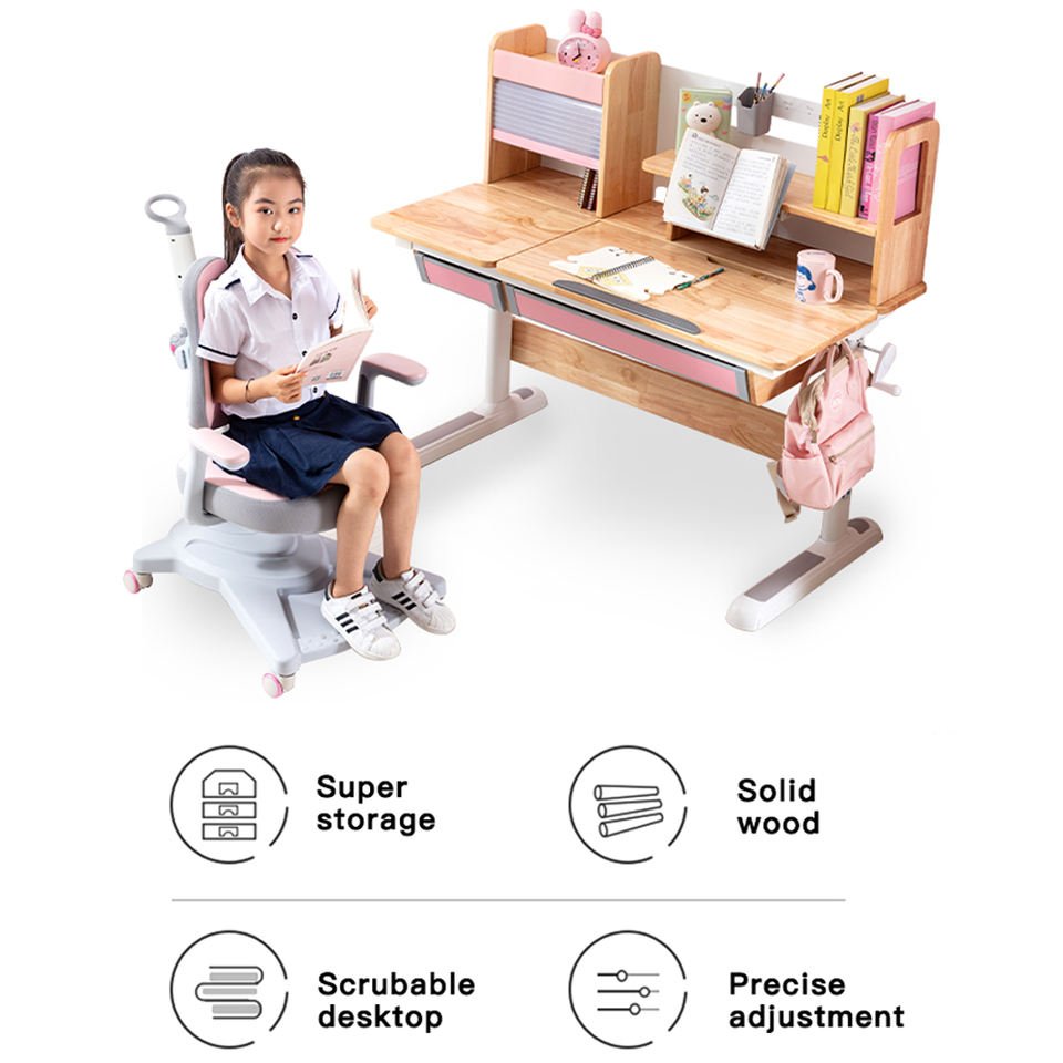 Height Adjustable Kids Reading Desk Chair Ergonomic Study Table for School Home Use Children