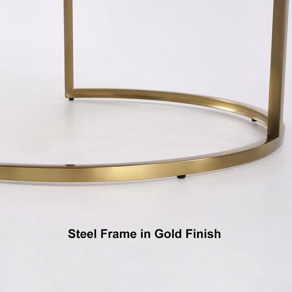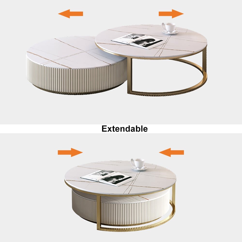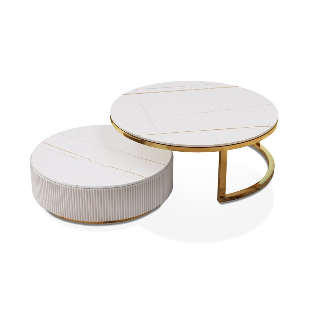 Round nesting set in sintered stone, 2 pieces, beige coffee table with drawer