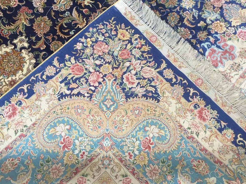 Silk Carpet Hand Knotted Blue Luxury Persian Design
